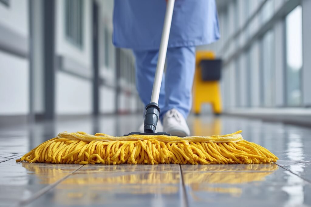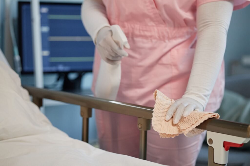 Healthcare facility cleaning services tailored to high-traffic and sensitive environments, supporting infection control and patient safety standards.